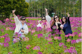 中午品嘗完地道的客家美食,大家乘車前往圣女果園體驗(yàn)采摘的樂趣。進(jìn)入果園,映入眼簾的是一排排整齊的圣女果藤蔓,鮮紅欲滴的果實(shí)掛滿枝頭,在陽光下顯得格外誘人。大家像是尋寶藏一般在果園中穿梭,不一會(huì)便滿載而歸。園內(nèi)還有一片盛放的醉蝴蝶花海,或粉或紫的鮮花迎風(fēng)綻放,花枝細(xì)長、花球飽滿,朵朵小蕊如翩翩起舞的蝴蝶一般,浪漫且熱烈。大家漫步在花間,選出最美的角度攝影留念,享受著這份難得的寧靜與美好。